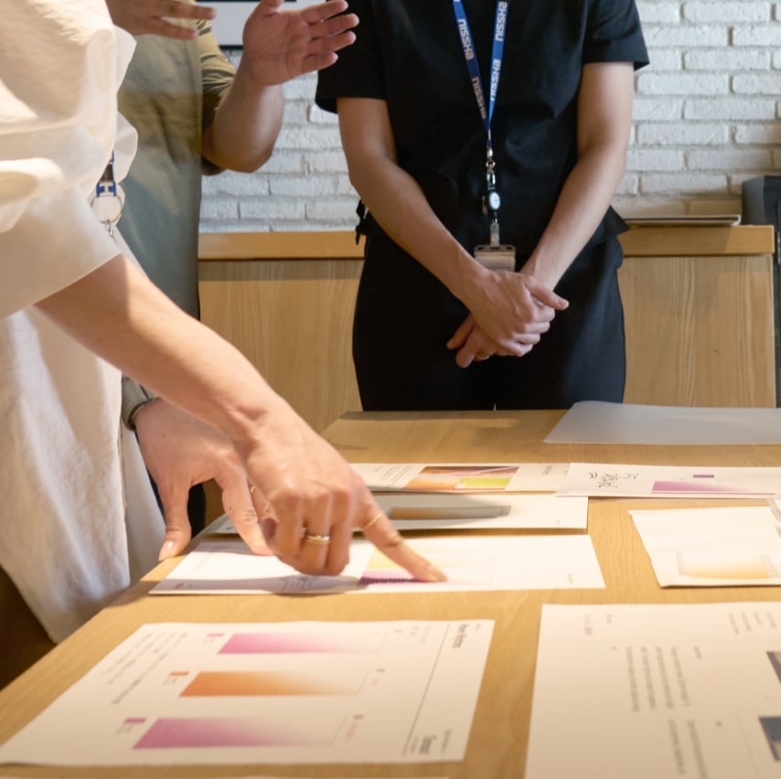 Through the interactions and experiences at this workshop, we absorbed everything from the allure of materials to printing techniques, enhancing the resolution of our design work. This led to deeper collaboration in accurately expressing the values Nissha aims to convey, strengthening our connections more than ever before.