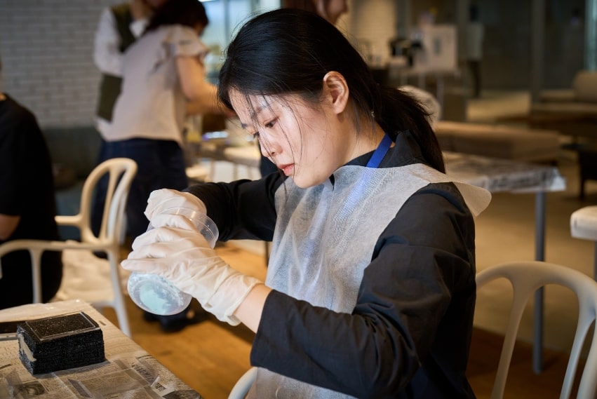 On the first day of the event, during the texture exploration workshop, each designer brought materials with textures they were curious about. These materials were then molded and solidified using resin.