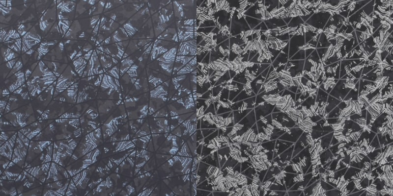 精巧に作られたパターンに、大柄な線やウェーブを重ねることにより、ダイナミックさと深みのある立体感を表現した。