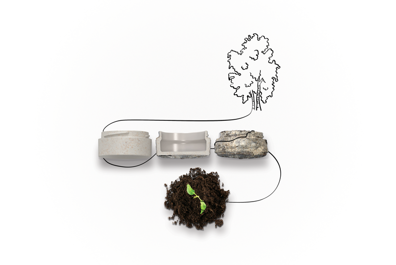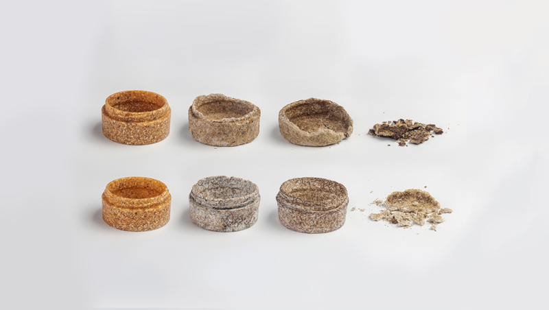- 100%バイオマス由来の成形品(ウッドチップと植物由来の生分解性樹脂)