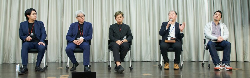 포럼 첫머리는, 워크샵 강사를 맡아 주신 주식회사 SEN대표이사 카카미타로씨로부터 이야기를 듣고, 쿄토 예술대학 예술학부 제품 디자인 학과장 카자마 시게유키 씨, Qe to Hare Inc. 대표이사 다나카 히데유키 사내 패널, 산업자재사업부 부장 사사키 준씨, 디바이스사업부 부장 오카모토 코지씨가 함께 하는 자유토론을 진행했습니다.