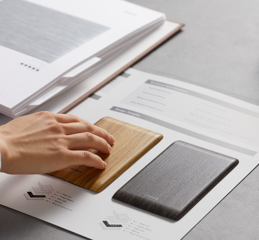 NISSHA는 트렌드 리서치에 독자적인 인사이트를 도입한 NISSHA TREND VISION과 이를 바탕으로 제안한 디자인 북(샘플북)을 사용하여 고객과의 워크샵을 정기적으로 개최하여 아직 보지 못한 미래의 사용자와 제품을 고찰하고 있습니다.
