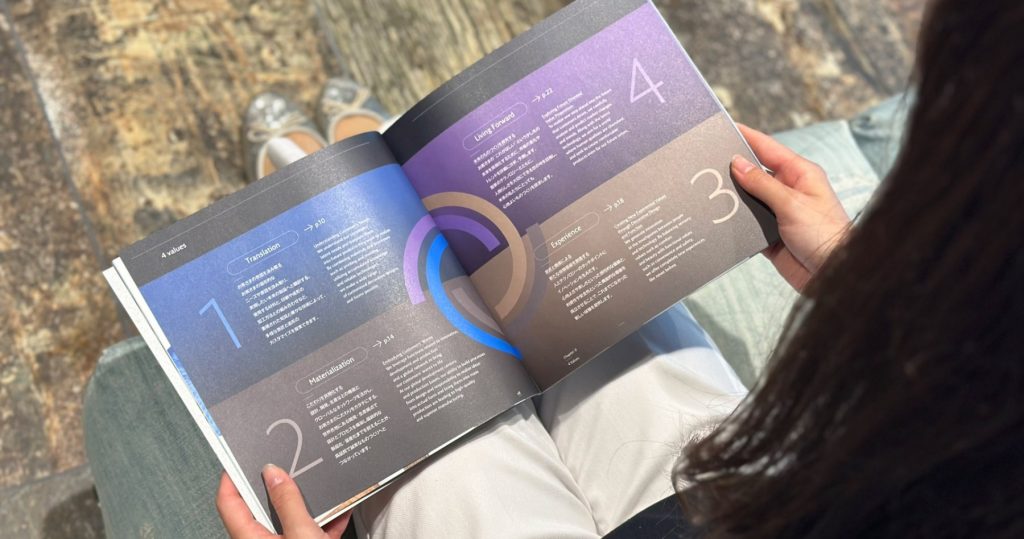작년, 브랜드 운영 멤버들이 제작한 Nissha SurfaceWorks 컨셉북은 우리가 제공한 가치와 지금까지 축적한 경험을 언어화하여 4가지 가치로 통합했습니다.