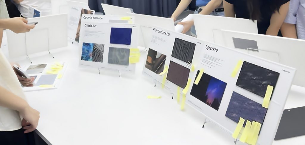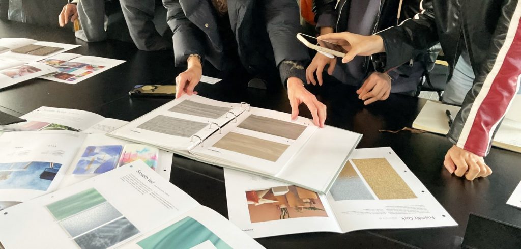 Debra:고객을 초대해 「NISSHA TREND VISION」이나 최신의 샘플 북을 소개하는 캐주얼한 미팅을 정기적으로 개최하고 있습니다. 이들은 그들이 원하는 다각적인 요구에 맞는 듯, 질감이 좋은 디자인 필름을 사용한 의장이나, 「mutech(뮤텍크)」의 빛 투과 표현 등 다양한 표면의 표현 방법에 대해 참석해주신 분들과 커피를 한 손에 들고 즐겁게 토론하고 있습니다.